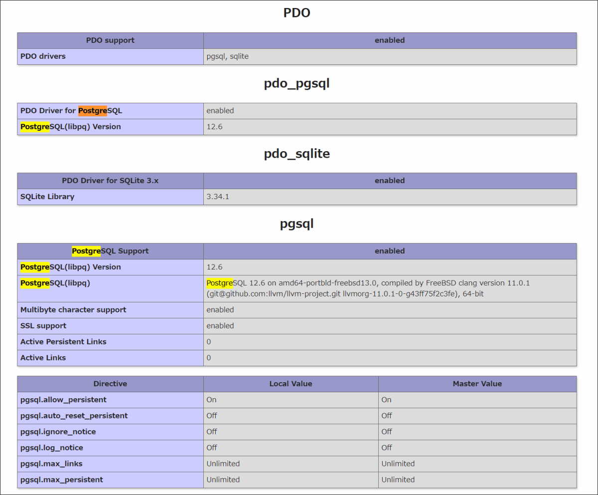 # pkg install -y php74-pgsql php74-pdo_pgsqlこれ以前に