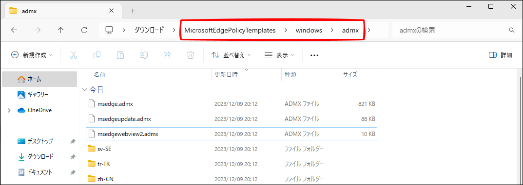 すると、中に MicrosoftEdgePolicyTemplates.zip が入っているため、これを展開します。