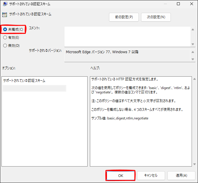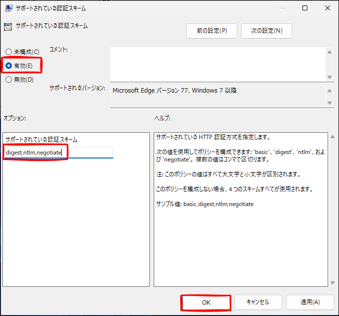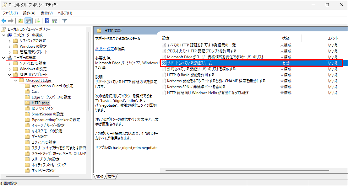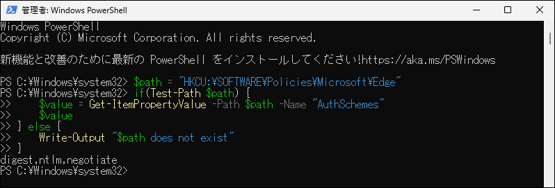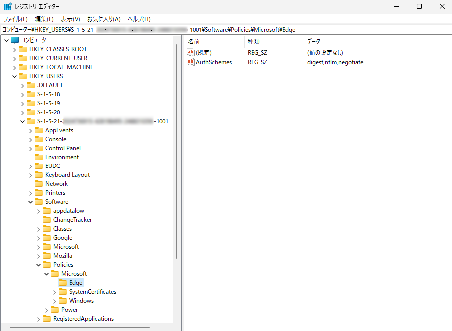 }digest,ntlm,negotiateHKCU:\SOFTWARE\Policies\Microsoft\Edge does not exist回避方法