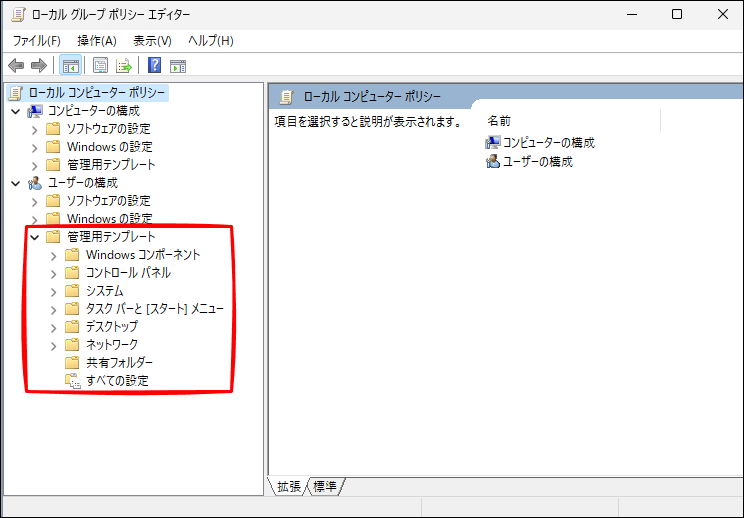 gpedit.msc で見ると、以下の階層のポリシーになります。