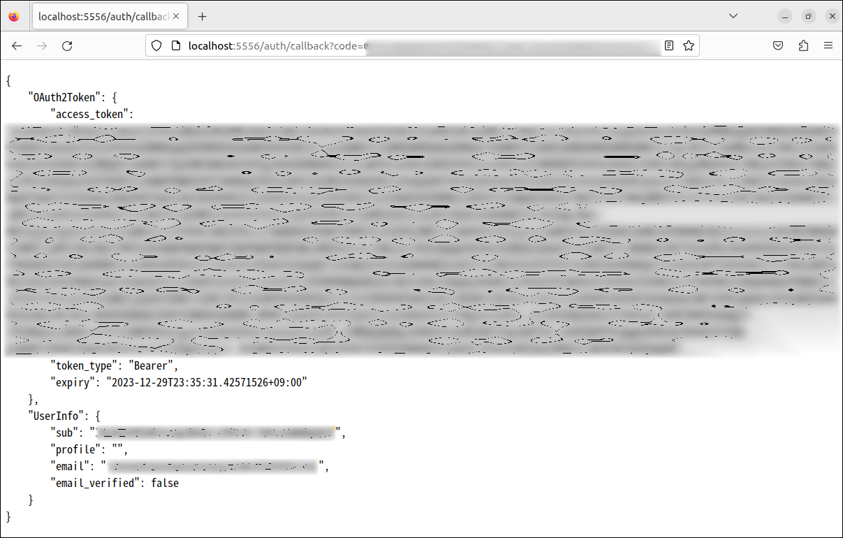 http://localhost:5556/auth/callback にリダイレクト(自動的にアクセス)