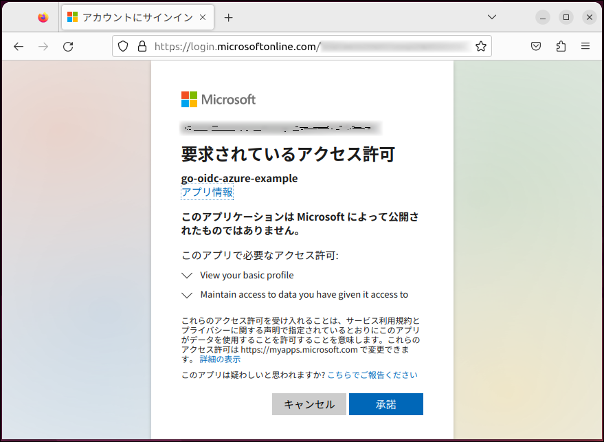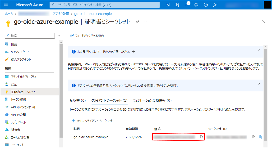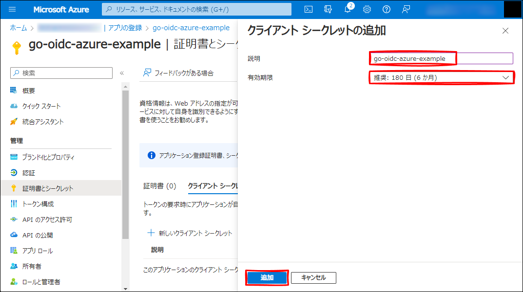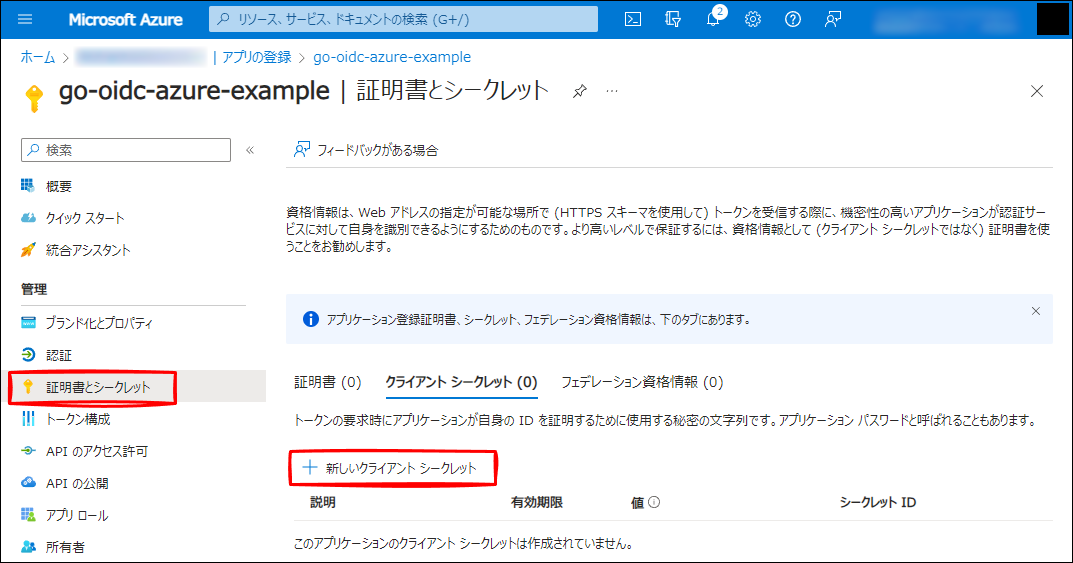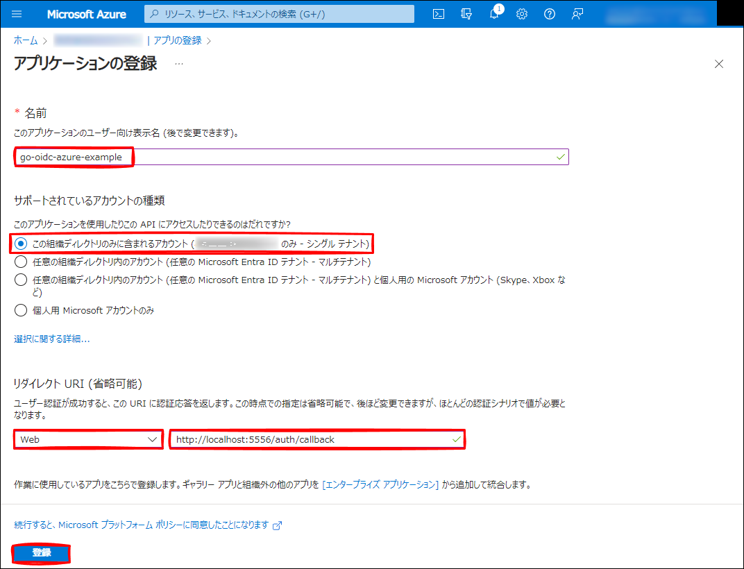 名前: go-oidc-azure-example(任意です。)