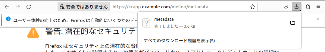 識別子 (エンティティ ID)は、mod_auth_mellon で出てきた ENTITY_ID と考え方は同じで、一意の識別子です。何でも良いですが、この後 Keycloak の設定画面で初期設定された状態で表示されるのがこの URL です。