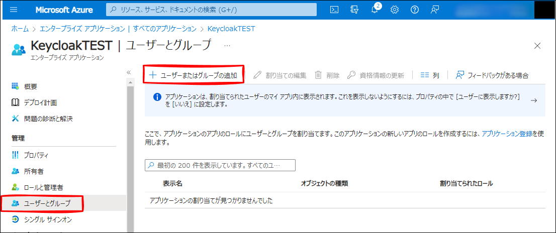 しばらく待つか、一旦初期画面に戻って、KeycloakTEST を選択しなおさないといけないかもしれません。