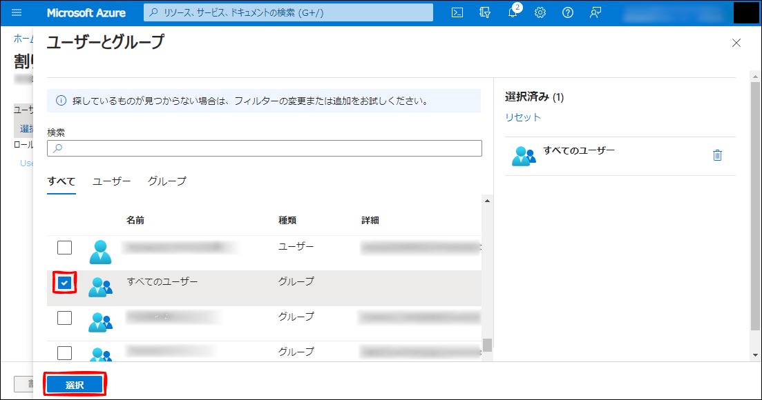 今回は、すべてのユーザー にします。
