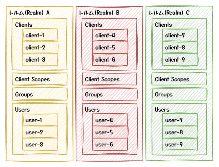 ・IdP(Identity Provider): Keycloak
