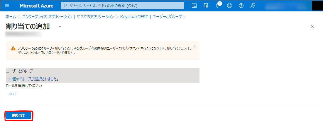 割り当ての追加 画面に切り替わり、選択されていません をクリックします。