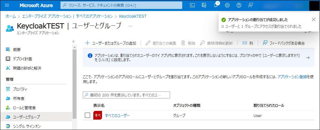 これで Azure AD 側は、準備完了です。