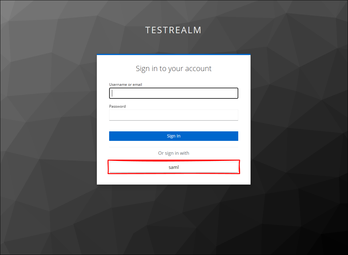 saml の表記は、Keycloak の Identity providers → saml → General settings - Alias 設定の文字列になります。