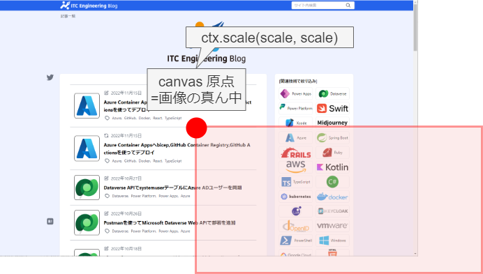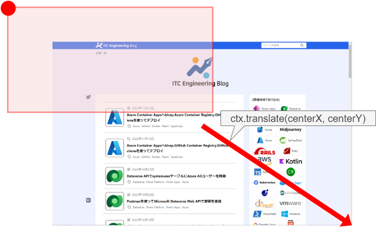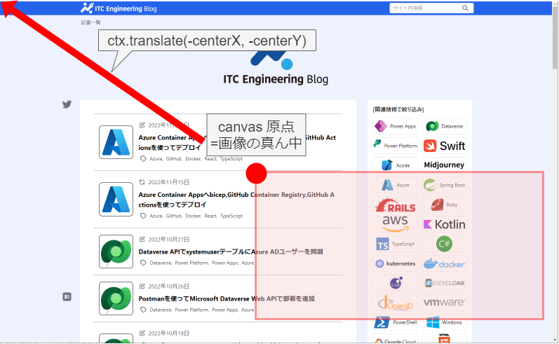 canvas の原点が画像の真ん中になるように画像を移動します。
