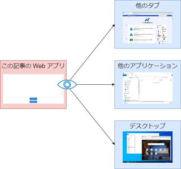 WebRTC という技術を使って、別タブやデスクトップ全体、ブラウザ以外のアプリケーションのスクリーンショットを撮影できる Web アプリを作成しました。