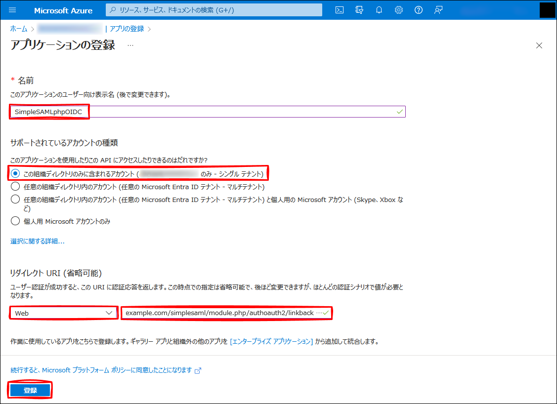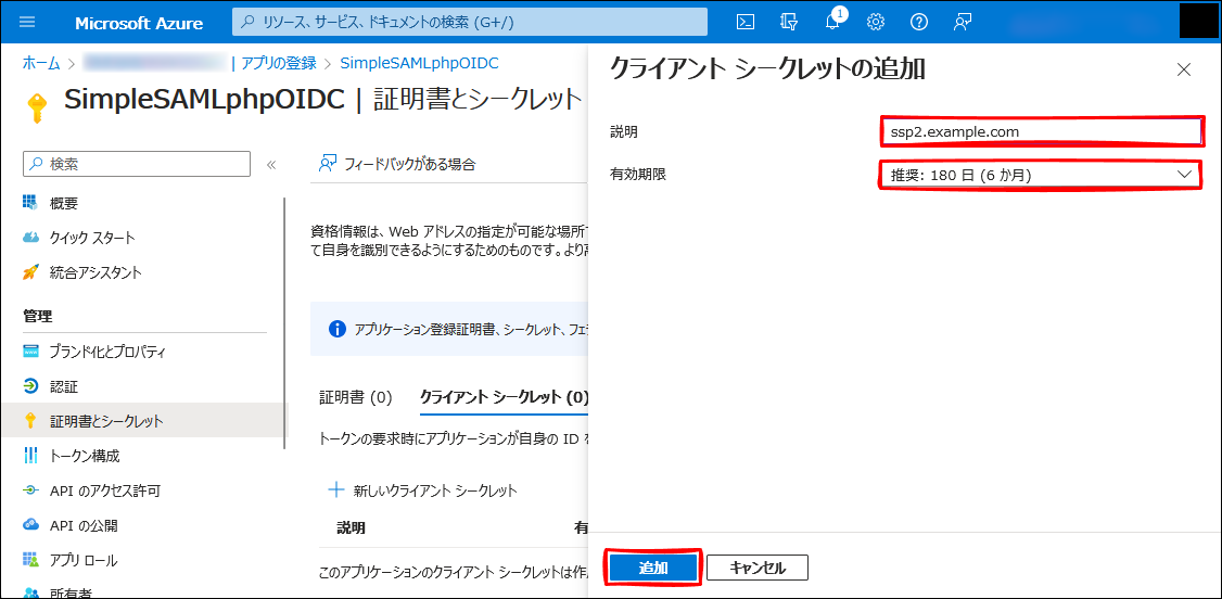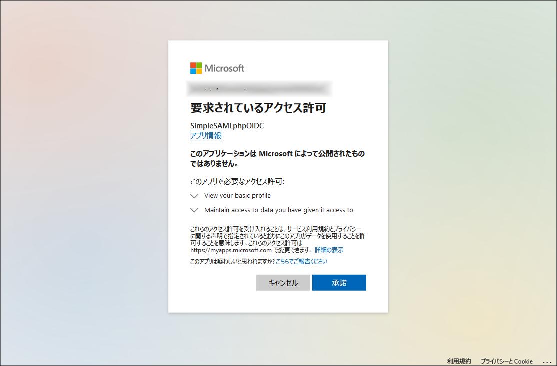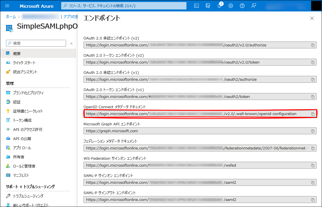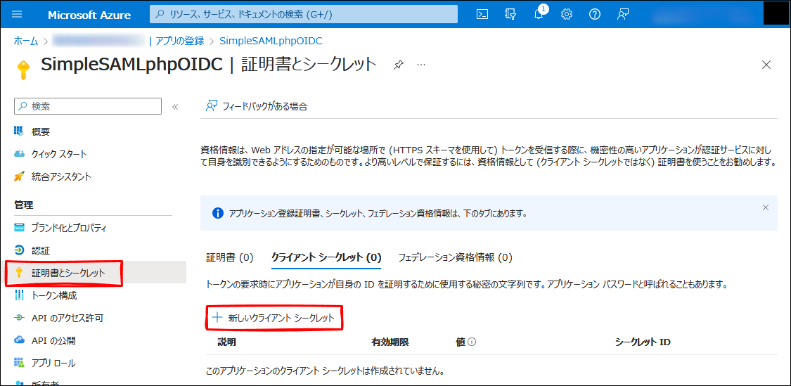 Azure AD - アプリの登録 - SimpleSAMLphpOIDC - 認証