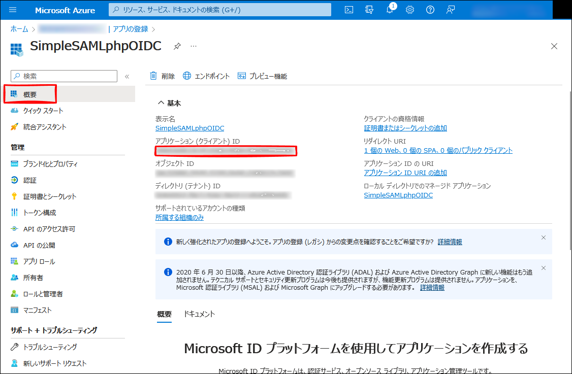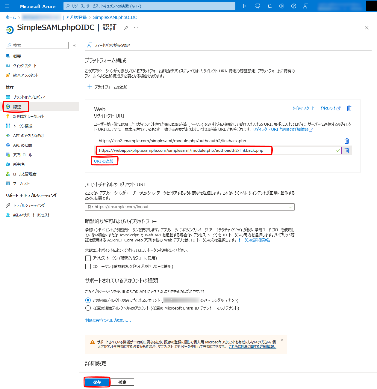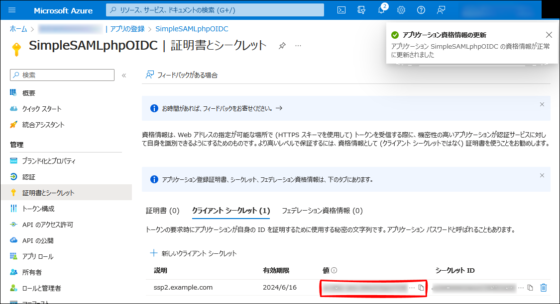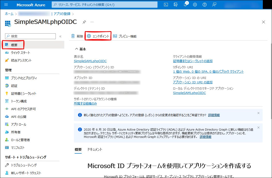 Azure AD - アプリの登録 - SimpleSAMLphpOIDC - 認証
