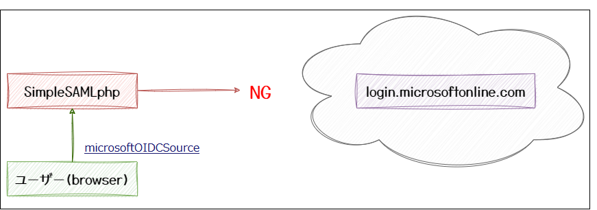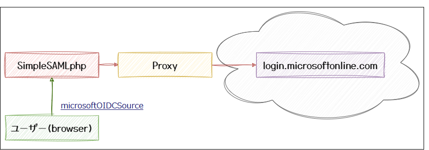 SimpleSAMLphp → プロキシサーバー → インターネット(https://login.microsoftonline.com/...)の通信が可能になるようにプロキシサーバーの設定をします。
